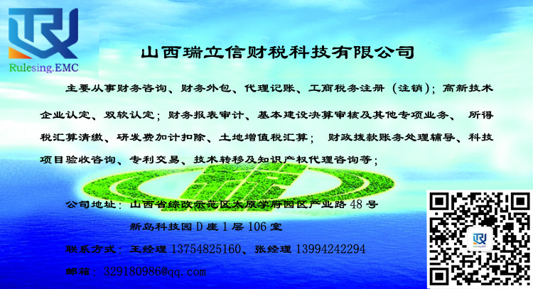 山西瑞立信財稅科技有限公司是以會計師事務所、稅務師事務所及知識產權代理公司等專業(yè)服務機構作為依托背景,擁有多名注冊會計師、注冊稅務師、會計師、助理會計師等專業(yè)的財稅人員,擁有可靠而廣泛的社會資源,能保證客戶享受到安全、放心、可靠、完善的財稅服務。